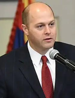 Hunter Hill (born June 23, 1977)[1] is an American Republican Party politician.[2] He represented District 6 of the Georgia State Senate, located in Smyrna,[3] from when he was first sworn into office on January 14, 2013,[4][5] until he resigned on August 30, 2017 to run for governor.[6][7] On April 24, 2017, Hill announced his candidacy for governor of Georgia in 2018.[8] He lost the Republican gubernatorial primary on May 22, 2018, coming in third behind Casey Cagle and Brian Kemp.