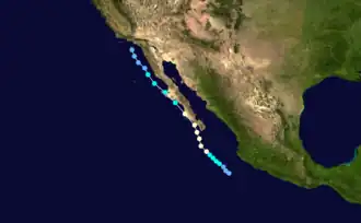 - ^ a b c d e f Gunther, Emil (April 1978). "Eastern North Pacific Tropical Cyclones of 1977". Monthly Weather Review. 106 (4). Eastern Pacific Hurricane Center: 546. Bibcode:1978MWRv..106..546G. doi:10.1175/1520-0493(1978)106<0546:ENPTCO>2.0.CO;2. ISSN 1520-0493. Retrieved August 11, 2011.