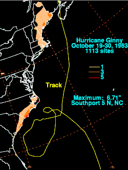 {{cite web}}: CS1 maint: multiple names: authors list (link) - ^ a b Wilmington, N.C. Weather Bureau Office (1963-10-28). "Preliminary Report on Hurricane Ginny October 19 to 27 1963". National Hurricane Center. Retrieved 2011-10-17.