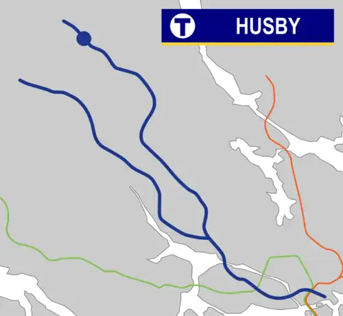 Husby is a station on the blue line of the Stockholm metro, located in the district of Husby, northern Stockholm. The station was inaugurated on 5 June 1977 as part of the extension from Hallonbergen to Akalla.[2] The distance to Kungsträdgården is 15 km (9.3 mi).