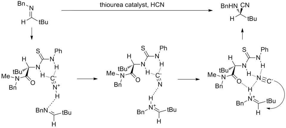 - ^ Zuend, S. J.; Jacobsen, E. N. (September 2009). "Mechanism of amido-thiourea catalyzed enantioselective imine hydrocyanation: transition state stabilization via multiple non-covalent interactions". J. Am. Chem. Soc. 131 (42): 15358–15374. Bibcode:2009JAChS.13115358Z. doi:10.1021/ja9058958. PMC 2783581. PMID 19778044.