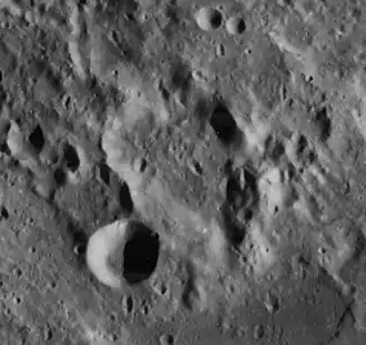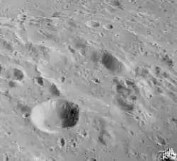 Hypatia is a lunar impact crater along the northwest edge of Sinus Asperitatis, a bay on the southwest edge of Mare Tranquillitatis. It was named after Egyptian mathematician Hypatia of Alexandria.[1] The nearest crater with an eponym is Alfraganus to the west-southwest. However, farther to the south-southeast, across the lunar mare, is the prominent crater Theophilus.