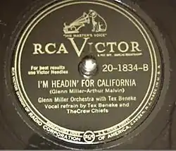 - ^ "I'm Headin' for California" was released on the 2010 CD Glenn's Travels: Glenn Miller and His Orchestra on Sounds Of Yesteryear in a radio broadcast from 1944 and on the 1998 CD Glenn Miller Orchestra: A Tribute to Tex Beneke as the 1946 RCA Victor 78 single on Halcyon Records in the UK.