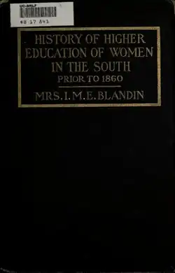 Isabella Margaret Elizabeth Blandin (née, John; pen name, I. M. E. Blandin; 1838 – June 30, 1912) was an American teacher and social worker. She was also the author of fiction and non-fiction works, History of Higher Education of Women in the South, Prior to 1860 being chief among them.[1][2]