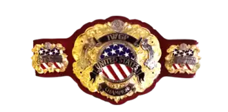 The title belt was made red to distinguish it from the black IWGP Heavyweight Championship belt and the white IWGP Intercontinental Championship belt.[11] It featured five plates; the American flag in the center plate with the words "UNITED STATES" imprinted over the flag, and "IWGP" imprinted on top and "CHAMPION" on the bottom. The first set side plates also featured the American flag with the words "UNITED STATES CHAMPION" imprinted over the flags, and the second set featured half the world globe on one and the other half on the other.
