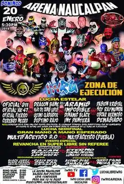 The Zona de Ejecucion (2019) (Spanish for "Elimination Zone") is a major lucha libre event produced and scripted by Mexican Lucha Libre, or professional wrestling promotion, International Wrestling Revolution Group (IWRG). The show was held on January 20, 2019 at Arena Naucalpan in Naucalpan, State of Mexico, Mexico; which is IWRG's main arena. The show was the third time IWRG held the eponymous Zona de Ejecucion match, after having held one in January and one in June of 2018.