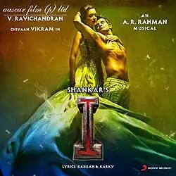 I is the soundtrack album to the 2015 Indian romantic thriller film of the same name written and directed by S. Shankar. A. R. Rahman composed the original songs and background score for the film.[1] The album consists of seven tracks, which include a remix and a reprise. Songs in the film vary in genre like EDM, bhangra, opera, urban. The original version of the soundtrack has youth oriented voices. The original version of the album was released on 6 September 2014.[2] The audio was launched at a grand function at the Jawaharlal Nehru Indoor Stadium, Chennai on 12 September 2014, with Arnold Schwarzenegger as the chief guest.