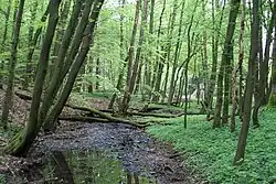 The Ichte springs east of the Oder Dam as Steinaer Bach in Lower Saxony.[1] After the confluence of the Hellegrundbach, the river is called Ichte.[2] The Ichte then crosses the boundary between Lower Saxony and Thuringia.[2] It finally discharges northeast of Pützlingen, a district of Werther, from the left into the Helme.[3]