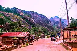 The Idanre Hill is well known for its scenic landscape.[2][3] Its wide variety of cultural sites like 'Owa's Palace', shrines, The Old Court, Belfry, Agboogun footprint, thunder water (Omi Apaara) and burial grounds have since brought the location fame and the nation's nomination for the UNESCO World Heritage Site shortlist.[4][5] It is situated 3000 ft (914.4 meters) above sea level and houses a unique ecosystem upon which the cultural landscape has Integrated.[6] It also has diverse and variegated eco-systems of flora and fauna. Oke Idanre contains very important bio-physical and land form features whose interaction with the physical features created an enduring cultural landscape within the setting.[7]
