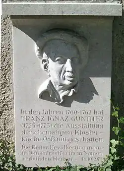 Memorial stone commemorating Ignaz Günther at the former abbey church in Rott am Inn