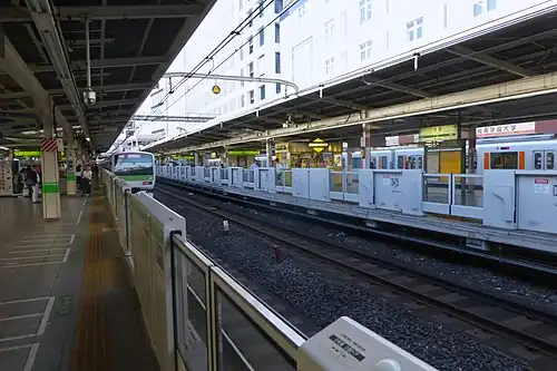 Chest-high platform edge doors were introduced on the Yamanote Line platforms on 2 March 2013.[2]