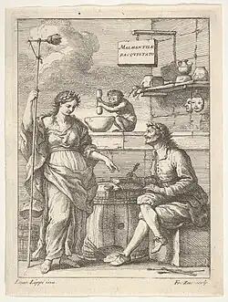 Lorenzo Lippi's Malmantile racquistato was published under the anagrammatic pseudonym of Perlone Zipoli. Il Malmantile racquistato is an Italian mock-heroic romance influenced by Alessandro Tassoni's La secchia rapita.[3] According to Filippo Baldinucci Lippi intended the Malmantile to be the reverse of Torquato Tasso's Gerusalemme Liberata (Jerusalem Delivered).[2]