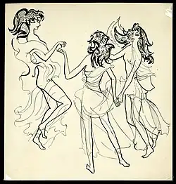 Drawing for Il ballo delle ingrate by Peter Hoffer (1924-2000; undated).