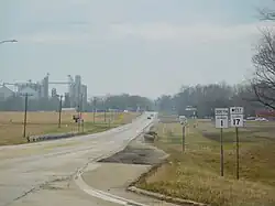 Through Danville, IL 1 and US 136 continue north along North Vermilion Street until leaving the city. The routes pass east of the village of Johnsonville, before reaching the village of Alvin. In Alvin, US 136 turns west at the junction with the western terminus of IL 119, which connects to State Road 28 in Indiana. IL 1 bends northeast before reaching Rossville following some railroad tracks. The route turns north and reaches the village of Hoopeston, where it meets IL 9. Running along the westernmost end of Hoopeston, IL 1 is known as Chicago Road, crossing the Iroquois County line.[3]