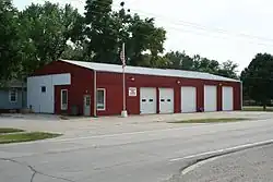 A view of the Bondville, Illinois fire station looking south west across Illinois Route 10.