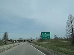 Illinois 33 continues south, parallel to the Wabash River and beneath U.S. Route 50. There is no intersection at this point.[2] Illinois 33 then travels west (along the old alignment of U.S. 50) and then back north to meet its terminus at a full interchange with U.S. 50.