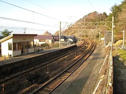1. ^ Ishino, Tetsu (1 October 1998). 停車場変遷大事典 国鉄・JR編 Ⅱ [Station Transition Directory – JNR/JR II] (in Japanese) (1st ed.). JTB. p. 560.