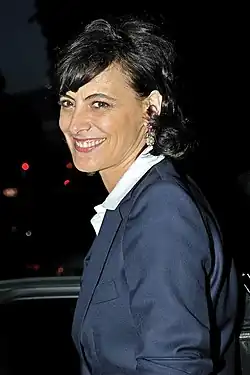 On 9 June 1990, in Tarascon, France, she married Luigi d'Urso (1951–2006), an Italian nobleman and a railroad executive.[17][18] Luigi was the son of Alessandro d'Urso (1913–2000), and his wife, Donna Clotilde Serra dei Duchi di Cassano (1917–1960), daughter of Don Luigi Serra, 9th Duke di Cassano (1868–1935), and Elizabeth Grant (1886–1938); descendant of George Clymer, one of the Founding Fathers of the United States, who signed both the United States Declaration of Independence in 1776 and the United States Constitution in 1787).[19][20][21] Luigi and Inès had two daughters, Nine Marie d'Urso (born 27 February 1994) and Violette Marie d'Urso (born 6 August 1999).[22][23] She has two stepdaughters, Clotilde d'Urso and India d'Urso, the daughters of Luigi d'Urso by his first wife, Guendalina Levier-Ffoulke. Luigi d'Urso died of a heart attack in 2006, at age 52.[24] Since 2009, La Fressange has been in a relationship with the French entrepreneur and journalist Denis Olivennes (b. 1960), the son of psychiatrist and poet Armand Olivennes (1931–2006), nephew of Claude Olievenstein, also a psychiatrist, and younger brother of François Olivennes, a noted French obstetrician and gynaecologist.[25]