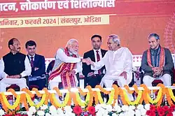 Narendra Modi, Naveen Patnaik shaking hand at the inauguration of IIM Sambalpur campus