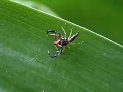 - ^ a b c d Maddison, Wayne P.; Beattie, Imara; Marathe, Kiran; Ng, Paul Y. C.; Kanesharatnam, Nilani; Benjamin, Suresh P.; Kunte, Krushnamegh (2020-12-16). "A phylogenetic and taxonomic review of baviine jumping spiders (Araneae, Salticidae, Baviini)". ZooKeys (1004): 27–97. Bibcode:2020ZooK.1004...27M. doi:10.3897/zookeys.1004.57526. ISSN 1313-2970. PMC 7758311. PMID 33384565.