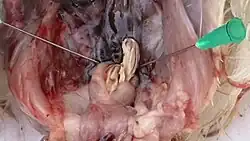 Infectious bursal disease (IBD), also known as Gumboro disease, infectious bursitis, and infectious avian nephrosis, is a highly contagious disease of young chickens and turkeys caused by infectious bursal disease virus (IBDV),[1] characterized by immunosuppression and mortality generally at 3 to 6 weeks of age. The disease was first discovered in Gumboro, Delaware in 1962. It is economically important to the poultry industry worldwide due to increased susceptibility to other diseases and negative interference with effective vaccination. In recent years, very virulent strains of IBDV (vvIBDV), causing severe mortality in chicken, have emerged in Europe, Latin America, South-East Asia, Africa, and the Middle East. Infection is via the oro-fecal route, with affected birds excreting high levels of the virus for approximately 2 weeks after infection. The disease is easily spread from infected chickens to healthy chickens through food, water, and physical contact.[2]
