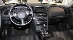 The interior was completely redesigned to bring the FX up to the level of luxury found inside of other Infiniti models like the G37 and EX35.[18] Features included stitched leather seats, stained maple wood or piano black finishes, and matte-finish surfaces.