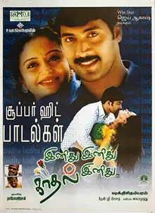 Inidhu Inidhu Kadhal Inidhu (transl. Sweet, sweet, love is sweet) is a 2003 Indian Tamil-language buddy romance film directed by Sakthi Chidambaram, and produced by Ramoji Rao. A remake of the 2001 Telugu film Anandam, it stars Jai Akash reprising his role from the original and Neha, with Hamsavardhan and Monica in supporting roles. The film was released on 8 May 2003.[1]