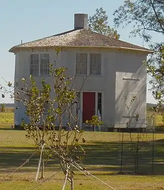 The Inkwell, also known as The Octagon House, is an historic octagonal house located at 30868 US 264 in Engelhard, North Carolina on Lake Mattamuskeet. It was built about 1857 by Dr. William T. Sparrow. The house is an eight-sided, two-story, frame dwelling, sitting on a brick pier foundation. Its boardwall construction and use of verticals only around the doors and windows follows Howland's cottage design in Orson S. Fowler's 1848 book entitled The Octagon House, a Home for All. A restoration of the Octagon House in the 1980s returned its appearance to its earlier conception using plaster interior walls, a stuccoed exterior and a wood shingle roof. The house features a central octagonal chimney of stuccoed brick.[2]