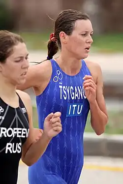 Inna Tsyganok (Ukrainian Інна Циганок (patronymic: Олегівна) and Russian Инна Цыганок; born 24 January 1986 in Zhovti Vody,[1]) is a professional Ukrainian Russian triathlete, member of the Ukrainian National Team[2] and National Champion of the year 2009. In 2011, Tsyganok took part in ITU competitions "representing ITU", i.e. without a citizenship, which seems to be a violation of the ITU regulations but as of August 2011 she is officially representing Russia.