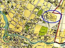 In 1913, a project of extension was approved in order to use plots of land lying on the western side of the Ossoliński Alley, in order to develop areas for exhibition and trading: the outbreak of World War I interrupted the work and the plan was never completed.[2] In 1919, prior to Bydgoszcz returned to Polish territory, employees, research records, plant preparations and laboratory devices were moved to Frankfurt an der Oder, and then to Gorzów Wielkopolski then part of Germany. However, this did not stop the activities of the Institutes, since Poland kept using actively the scientific buildings on the site.[4]