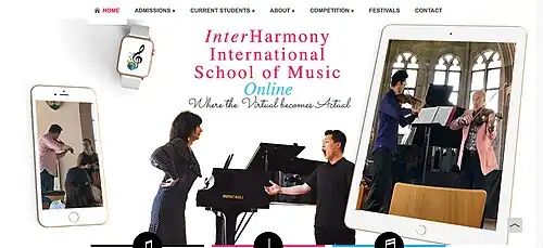 InterHarmony International Music Festival, a summer classical music festival, was the inspiration for founding the InterHarmony International School of Music,[5][6] in order to provide students with the option of studying in full programs without having to leave their homes. The programs allow students from any city or country to receive a balanced and intensive musical education virtually with professors who teach at universities around the world, members of acclaimed orchestras, soloists, and chamber musicians. Students can choose from several different programs, depending on age range.[7][8] In 2022, the school began offering digital credentials through Credly.[9]