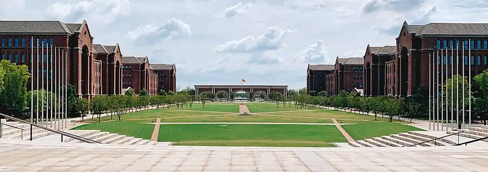 The campus is a collaborative project between the university and the local government. Spread over 67 hectares, the Neo-classical styled campus features buildings are made of fair-faced red bricks. Divided into three zones, residential colleges, teaching complexes, and research buildings, it sits between Lake Juanhu and Changsha River Wetland Park, offering a picturesque setting.