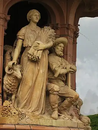 One of the main British commercial exhibitors was Doulton & Co, who presented The Doulton Fountain to the city after the International Exhibition of 1888. Originally situated in Kelvingrove Park during the exhibition, the massive terracotta structure was later moved to Glasgow Green in 1890. At 46 ft high, with its outer basin measuring 70 ft in diameter, it remains the biggest fountain of its kind in the world.