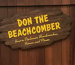 Beach was honored with a House Resolution Tourism Award in 1957.[9] He died in Hawaii in 1989.[10][11] The International Market Place had experienced almost complete turnover since its inception, and all of its buildings were finally bulldozed in 2013 after they had fallen into great disrepair. Preservationists ensured that the main banyan tree remained for the completely new International Market Place's grand reopening in 2016.[12][13] A commemorative plaque installed on the new "Don's Treehouse" reads in part: "The opening of Dagger Bar and the Bazaar Buildings in 1956 marked the establishment of Waikiki Village. Donn Beach...lived and worked in this treehouse...it was also the broadcasting home of radio personalities like J. Akuhead Pupule, who shared Hawaiian music with the world."