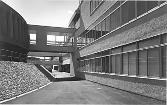 The school dates from the early 1970s and was designed by architect Gavin Haveron McConnell,[4] who was influenced by Le Corbusier and introduced some elements into the structure such as the pilotis which give open circulation under part of the building, and the accessible roof space. In 2004, the building received Listed status (Category B) from Historic Environment Scotland for its inventive Late Modern design.[5]