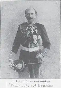 Ioannis Papadiamantopoulos (Greek: Ιωάννης Παπαδιαμαντόπουλος; 1839–1909) was a Greek soldier who rose to the rank of major general, and served as head of the military household of King George I of Greece and briefly Minister of Military Affairs.