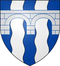 Azure two pallets wavy, overall a double-arched bridge Argent masoned Azure.