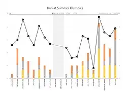 Iran has participated in 19 Summer Olympics and 12 Winter Olympics so far. Iran participated in 9 Summer Olympics and gained 4 gold medals before the 1979 Revolution, and participated in 10 Summer Olympics and won 23 gold medals after the revolution.[1][2]