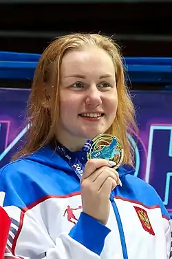 Irina Andreyevna Krivonogova (Russian: Ирина Андреевна Кривоногова; born 3 May 2000) is a Russian swimmer.