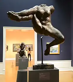 A 82.9 cm (32.6 in) high version, cast by Rudier in 1902-5, one of just seven known castings made during Rodin's lifetime, was sold for £11.57m at Sotheby's in 2016. It was sold from the collection of Sylvester Stallone, who had nicknamed it the "flying beaver". Stallone had acquired it at auction in 2007 for £4.6m, then a record for Rodin. Lucian Freud also owned a copy for many years, which he placed at the end of his bed, making it the first thing he saw in the morning.[3]