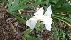 The fragrant flowers,[7][8][15] also come in various shades. The most common,[3][7] are white,[8][16][17] or creamy white.[7] Or white tinged with blue.[14] Other forms found include pale blue,[5] lilac,[11][12][13] lavender or blue-purple,[5][7] the purple forms may not hybrids.[17] The white forms are very similar to Iris albicans.[15]