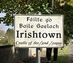 Irishtown (Irish: An Baile Gaelach)[2] is a village in County Mayo, Ireland, located on the southern county border with County Galway about halfway between Claremorris and Tuam on the R328 regional road. Irishtown is in the Civil Parish of Crossboyne, Barony of Clanmorris and the Catholic Diocese of Tuam. It is sometimes referred to as 'The Cradle of the Land League' due to its connections with the founding of the Irish National Land League.[3]