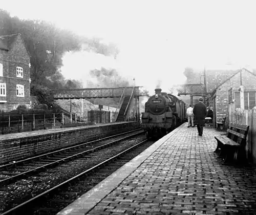 The station was closed in 1963. Although thought by some people to have been closed as part of the Beeching axe, its planned closure pre-dated his report.[1][2]