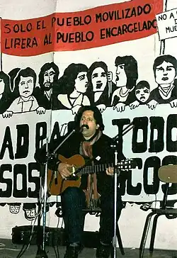 In 1984 Ismael returned to Santiago to participate with other Chilean artists in the political-cultural movement against the military dictatorship of Augusto Pinochet. He joined "Taller Sol", a countercultural space founded by the poet and graphic designer Antonio Kadima, and together they toured Europe to share news of the Chilean struggle.[5] Ismael frequently performed in solidarity activities in peñas, unions, poblaciones (poor working-class neighborhoods) and universities with colleagues such as Rebeca Godoy, Cristina Narea, Payo Grondona, Jorge Venegas and Luis Le-Bert and bands such as Transporte Urbano, Sol y Lluvia and De Kiruza.