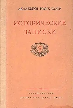 Istoricheskie Zapiski (Исторические записки) (Historical Transactions), also known as ИЗ, is an academic journal of history published by Progress Publishers in Moscow for the Russian Academy of Sciences and its predecessors since 1937.[1] The journal specialises in medieval and modern Russian history and until 1957 was one of just three journals available to Soviet historians, the others being Voprosy Istorii, which took a more historiographical approach, and Vestnik Drevnei Istorii which dealt with ancient history.[2]