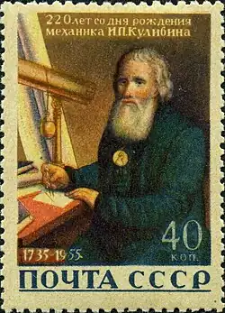 Ivan Kulibin on a 1955 Soviet postage stamp.