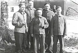 Skjånes (furthest to the right) with a group of fellow prisoners at Falstad in 1942