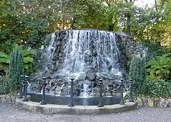 • The cascade, or waterfall, flows over an immense rockery, with rocks from each of Ireland's 32 counties. The cascade uses recycled water today but originally used water from the Grand Canal.[17]