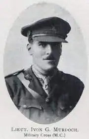 Ivon George Murdoch MC and bar (19 October 1892[1] – 12 August 1964) was an Australian Army officer during World War I. He was notable for the rare distinction of twice being awarded the Military Cross (MC) for bravery.[2] Both nominations and awards were made within the space of one calendar year (1918). While Murdoch entered the army with rank of private, he was later commissioned as an officer and reached the rank of lieutenant.[2]