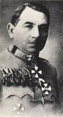 János Kiss (24 March 1883 – 8 December 1944) was a Hungarian military officer and the military leader of the Hungarian Committee for Liberation and National Uprising (in Hungarian: Magyar Nemzeti Felkelés Felszabadító Bizottsága). On 22 November 1944, he was arrested by the pro-Nazi Hungarian secret police on a meeting of that committee along with other resistance leaders. He was executed on 8 December 1944.